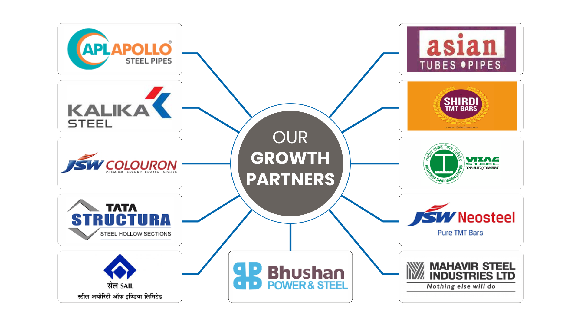 We are Located at three different areas having more than 25+ experienced team members. We are authorised dealers of various companies like APL APOLLO TUBES LTD , BHUSHAN POWER AND STEEL LTD ASIAN TUBES LTD, AARYA STEEL RE ROLLING MILLS, KALIKA STEEL ROLLING PVT LTD